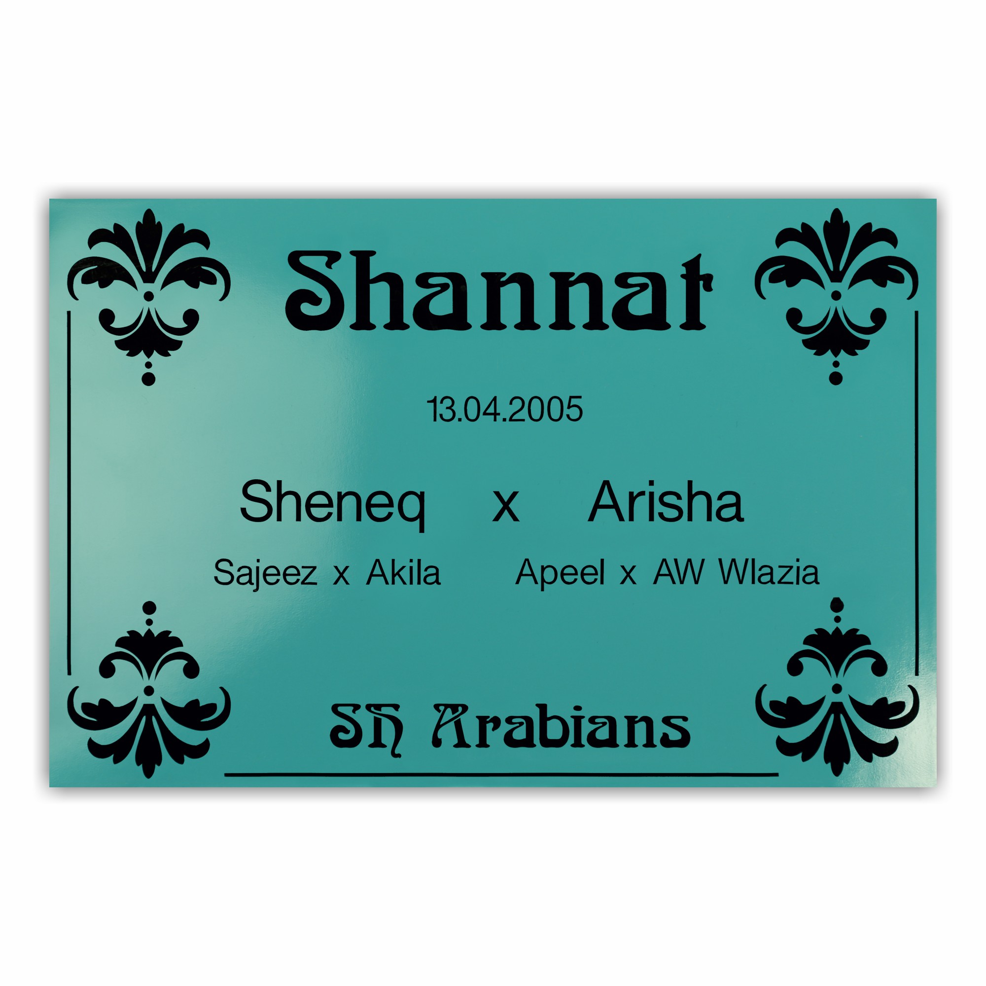 Uniformieren Sie die Boxenbeschriftung im Stall, heben Sie sich mit Ihrem eigenen Branding von anderen ab, personalisieren Sie die Aufschrift an Boxentüren, Transportboxen und vielem mehr. Ein Namensschild ganz nach Ihrem Geschmack. Bestellen Sie hier das wetterfeste Boxenschild im Design ‚Zahara‘ mit individueller Beschriftung. Beachten Sie die Hinweise in der Produktbeschreibung unten!