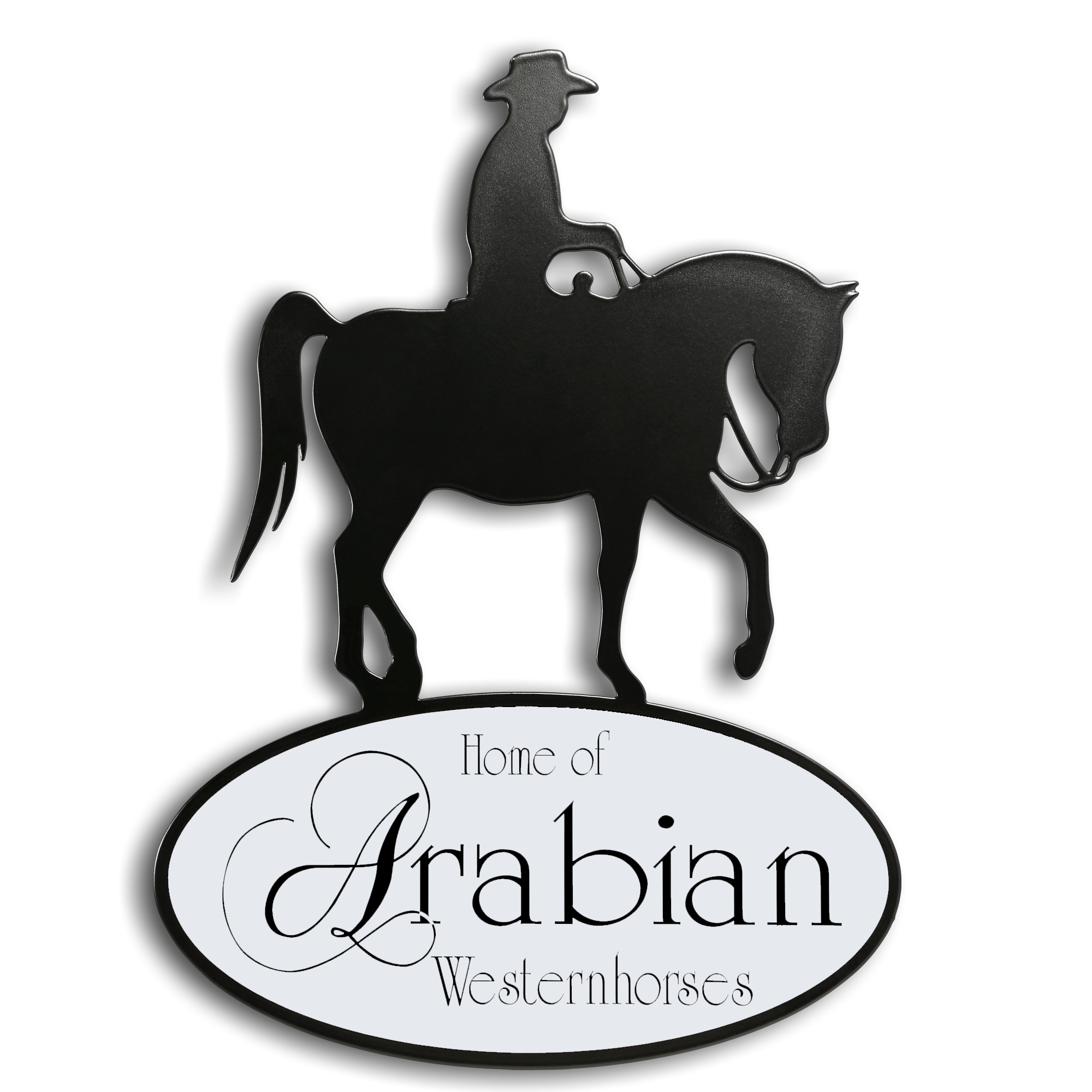 Clean lines, robust steel, decorative motifs. Remarkable features of our relief collection with motives of Arabian horses. Here the design „Westernriding“ in medium size and different color variations! Also available in large.