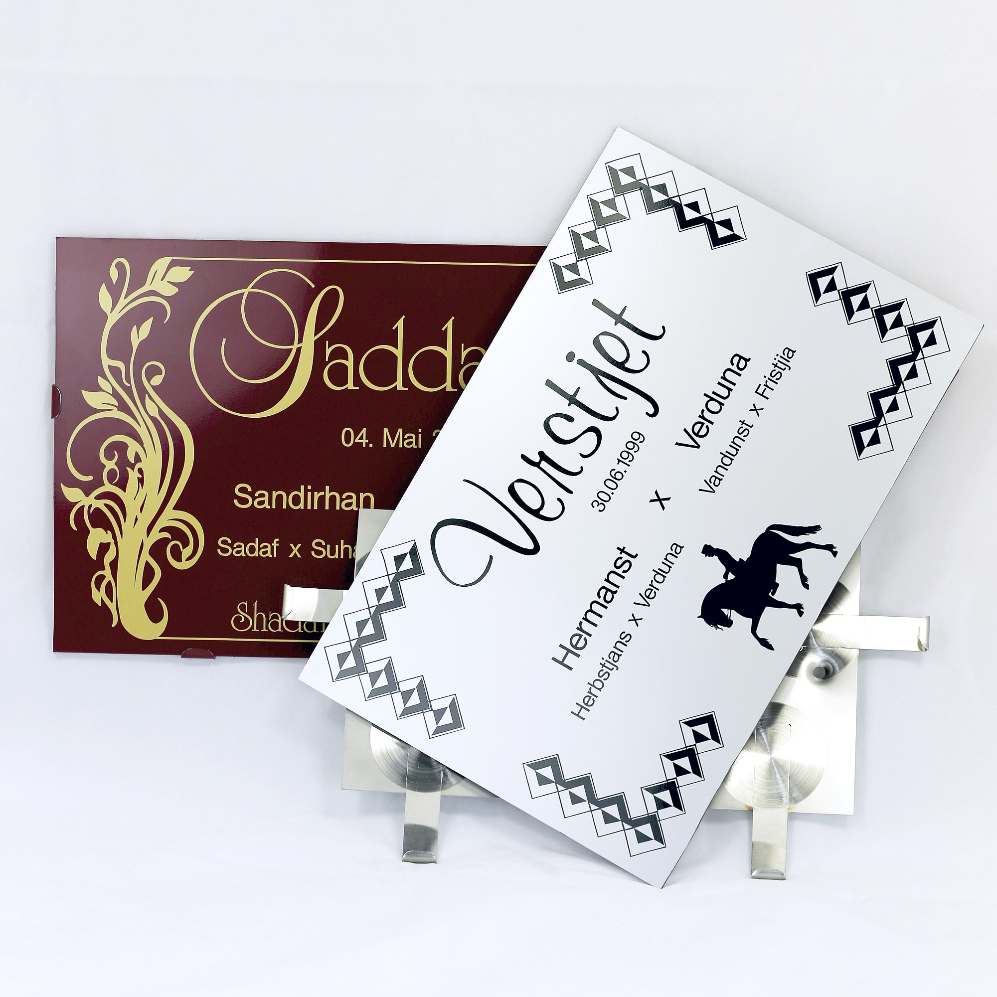 Setzen Sie Ihre Namensschilder einfach perfekt in Szene und tauschen Sie stressfrei die Beschilderung! Mit diesen speziellen, farbneutralen Wechselrahmen, passgenau für unsere Boxenschilder im Format 295 x 195 mm, erleichtern wir Ihnen die Anbringung z.B. an der Boxentür. Von Hand aus V2A Stahl gefertigt sind sie wetterfest und sehr beständig!